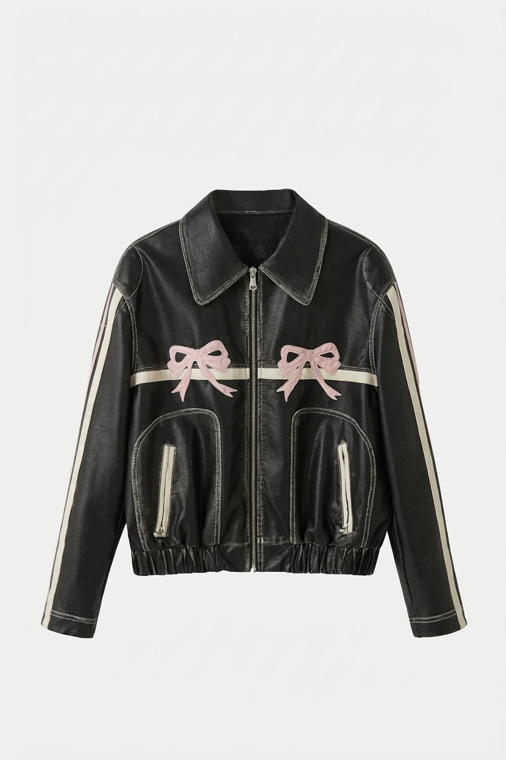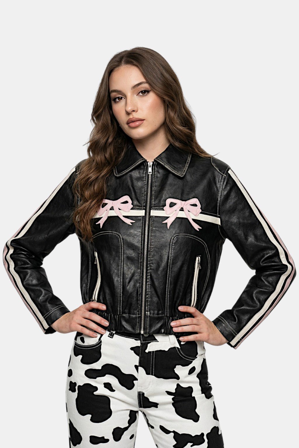 Pink bow leather jacket